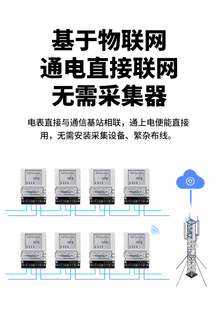 這種抄表方案無(wú)需額外的配集中器和采集器,沒有區(qū)域限制,不同的城市的電表也能夠?qū)崿F(xiàn)輕松抄表,只要有手機(jī)信號(hào)的地方就可以實(shí)現(xiàn)抄表,直接通過手機(jī)信號(hào)將電表里面的數(shù)據(jù)直接傳輸?shù)胶笈_(tái)中,這種電表成本比較貴,如果是集中安裝的電表,為了成本考慮,我們并不建議用這種抄表方案,圖如下: