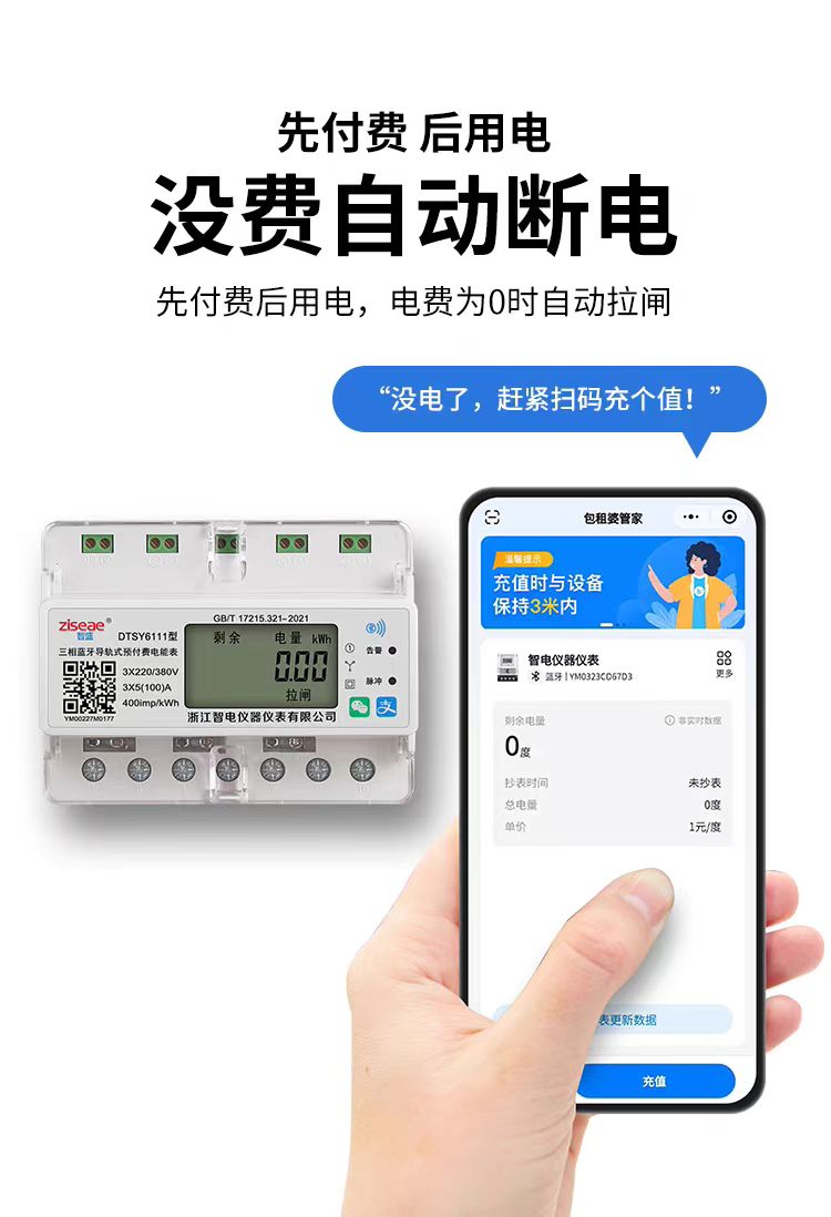 訂購產品: 三相導軌式藍牙掃碼充值電表
