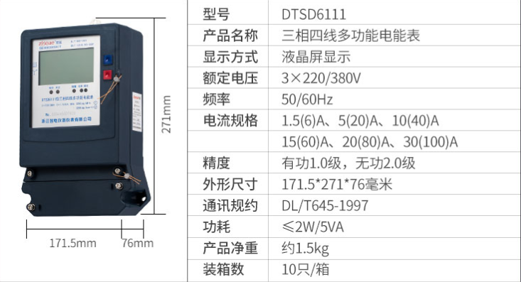 DTSD/DSSD6111型電子式三相智能電能表是采用集成電路,應用數字采樣處理技術及SMT工藝,根據工業用戶實際用電狀況所設計、制造的儀表。