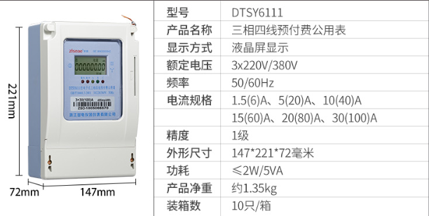 訂購產品: DTSY6111三相四線預付費公用表(農田灌溉)