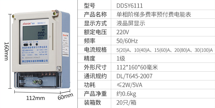 訂購產品: DDSY6111單相階梯多費率預付費電表