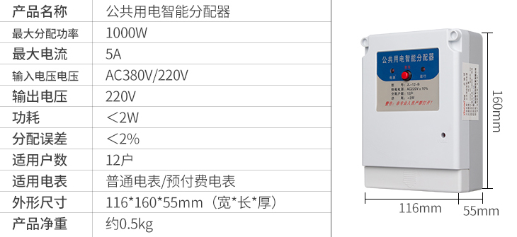 訂購產品: JL-12-A 2-12戶公共用電智能分配器