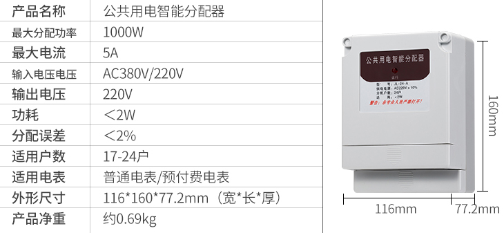 一、智盛牌JL-24-A公共用電智能分配器”是將公共樓道用電所消耗的電能(如樓道燈,對(duì)講防盜門等),自動(dòng)分配到各受益用戶的電表中。每天輪流接通一戶電表,開(kāi)機(jī)通電時(shí)第一戶電表隨機(jī)產(chǎn)生,達(dá)到公平分?jǐn)傠娰M(fèi)的目的。